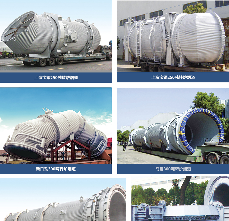從1990年開始設(shè)計(jì)制造煉鋼轉(zhuǎn)爐容量從15噸到300噸轉(zhuǎn)爐的煙道。煙道壓力從0.8Mpa~4.0Mpa。